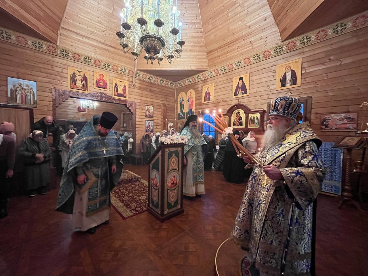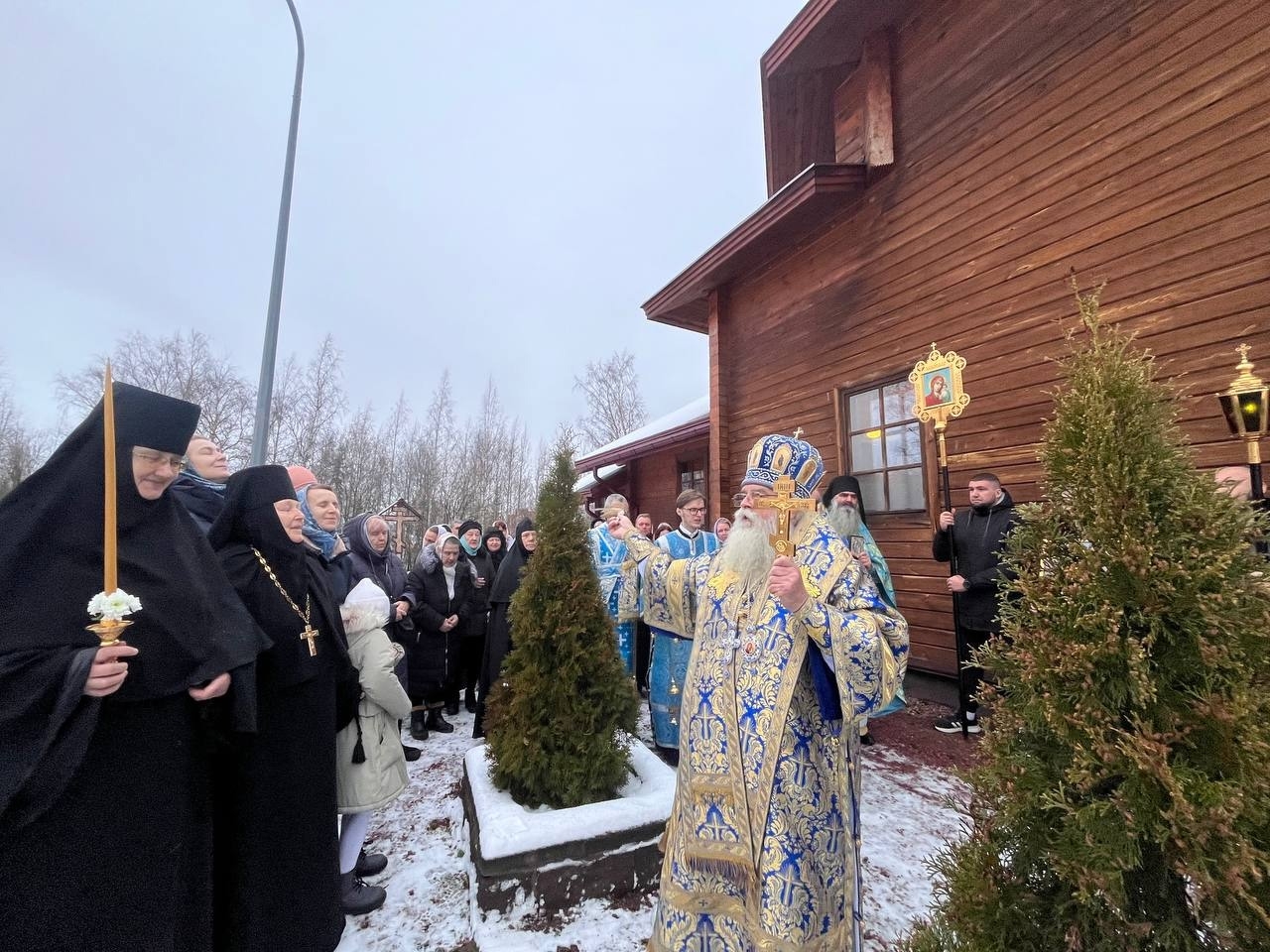 ПЕТРОЗАВОДСК. 10 декабря 2025 года. В день праздника иконы Божией Матери «Знамение» митрополит Петрозаводский и Карельский Константин возглавил торжественное богослужение в одноименном храме, расположенном на территории епархиального подворья в Петрозаводске, переданного в пользование Спасо-Преображенскому Важеозерскому монастырю.